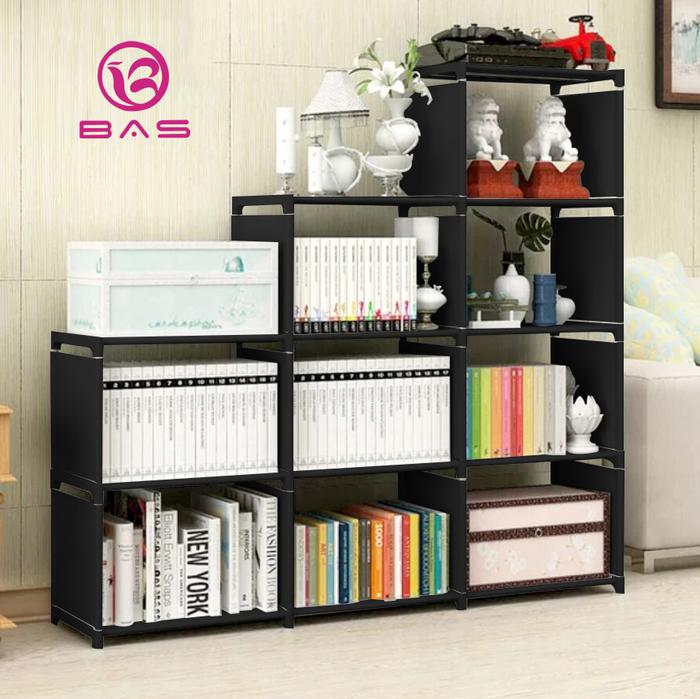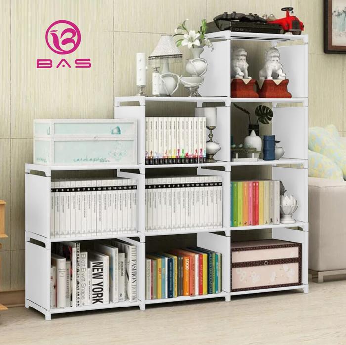 BAS Rak buku serbaguna lemari buku kotak rak susun portable lemari multifungsi 3 sisi 9 ruang - 3SISI GRAY POLOS