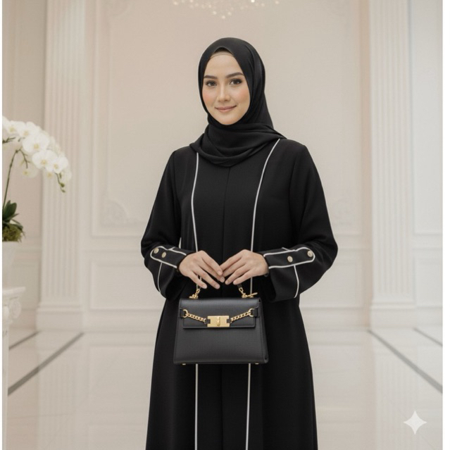 Abaya Hitam Basic List Gamis Syari Bahan Jet black Hitam Pekat Busui friendly