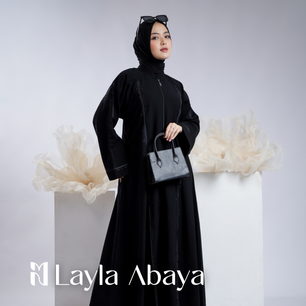 Layla Abaya Hitam Elegan Dengan Aksen Pita & Manik