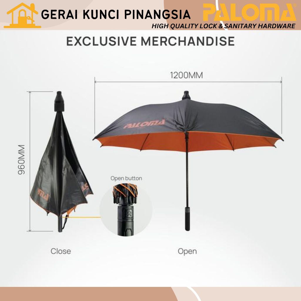 PALOMA GFP 173 Exclusive Merchandise Umbrella Payung Besar Jumbo Golf Otomatis Open Close Button Buka Tutup Jari Black H