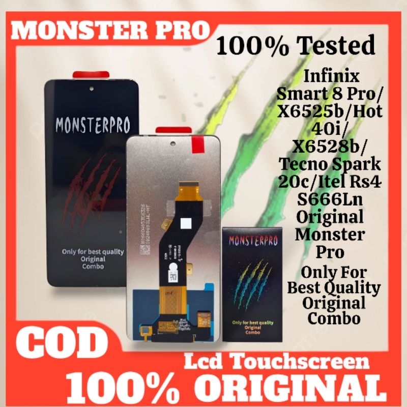 LCD TOUCHSCREEN INFINIX SMRT 8 PRO/X6525B/HT 40i/X6528B/TECNO SPARK 20C/SMRT 8 PLUS/ITEL RS4/S666LN ORIGINAL