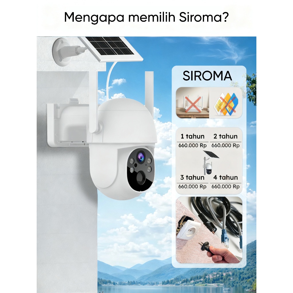 SIROMA CCTV Tenaga Surya 4G All Operator Bicara 2 Arah Yang Outdoor Waterproof CCTV Garansi 1 Tahun [ Kuota 4G GRATIS 1T
