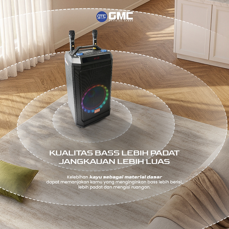 GMC Speaker 883K – Bluetooth Karaoke Speaker 10" – 200W, USB, SD, AV In, FM Radio, Gratis 2 Mic, Karaoke Jack, Wireless