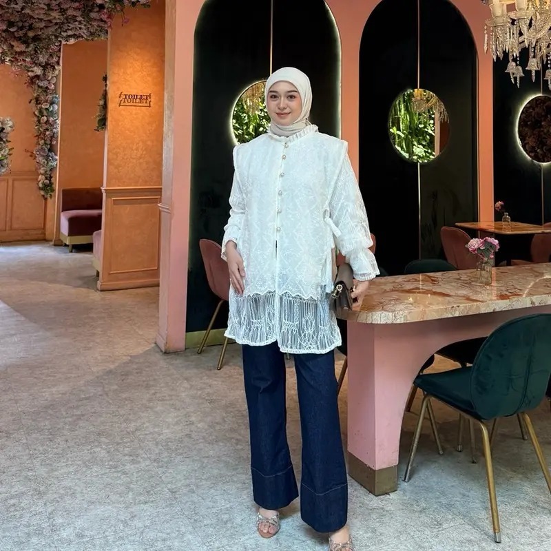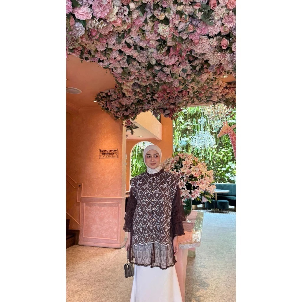 Flora blouse brokat kondangan bahan chantily mix katun bordir pesta wanita wisuda bridesmaider tunik lebaran kekinian
