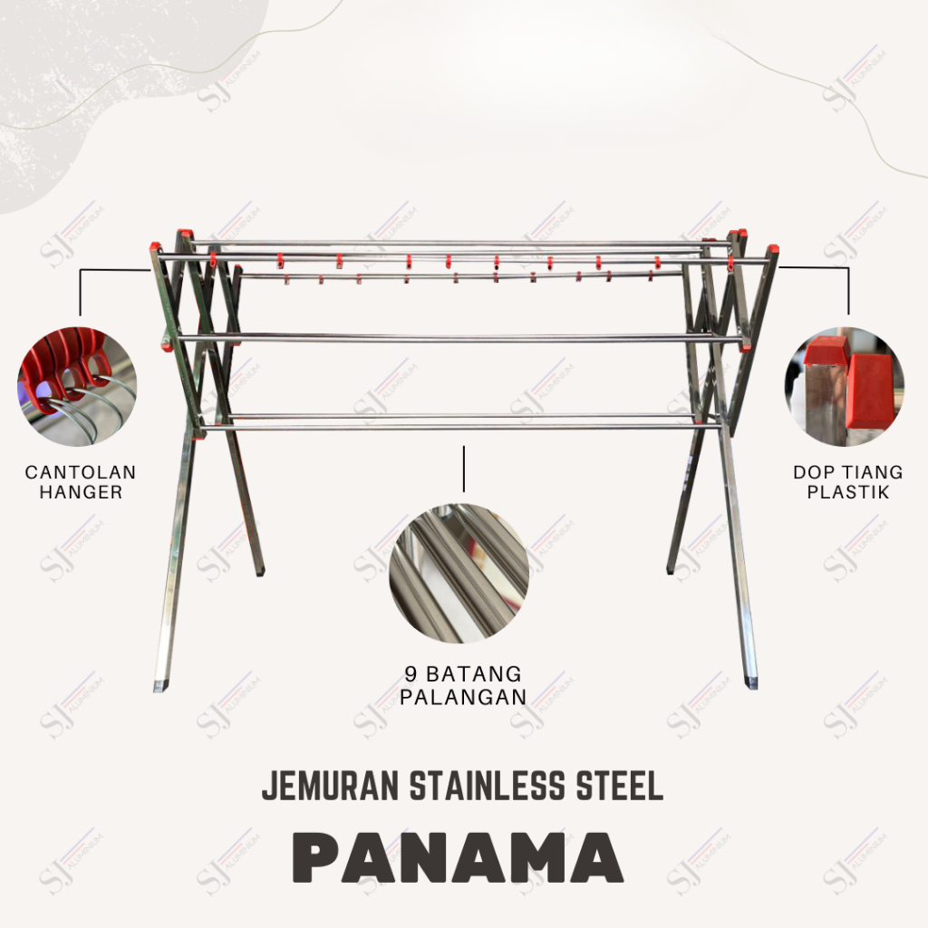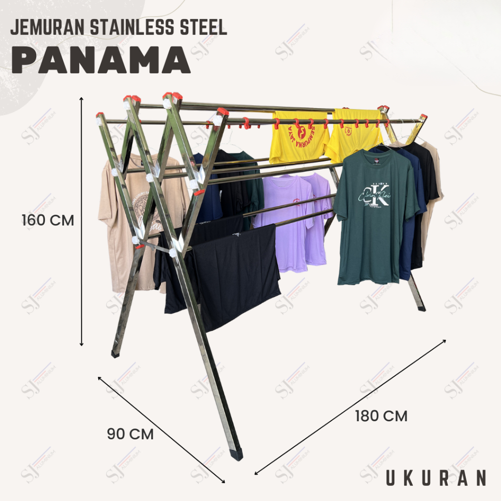 PANAMA - Jemuran Stainless Steel Jumbo 180 CM / Jemuran Baju & Pakaian & Handuk Lipat / Palang 9 - 180 CM / 1,8 Meter
