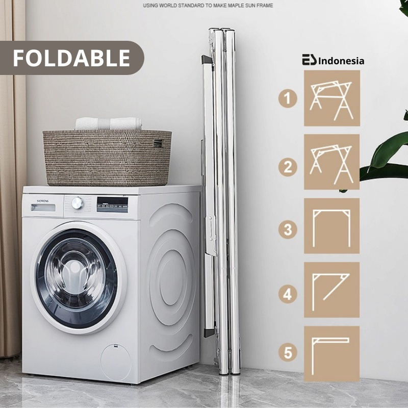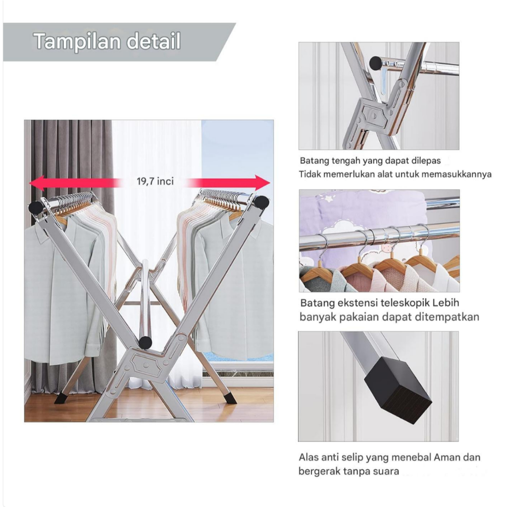 ESINDO Jemuran Pakaian Baju Lipat Portable Stainless Steel Tiang Hanger Tarik Jumbo Kuat Anti Karat