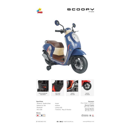 (FREE PELAPIS BAN + Bubble) Mainan Motor Aki Anak Honda Scoppy scopy PMB M 999 / M999 / M-999