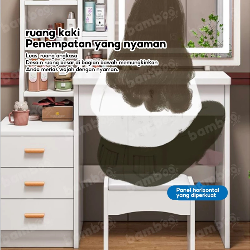 E-TIFE Meja Rias Putih Lampu LED / Meja Rias Kaca Sliding Minimalis / Meja Rias Aesthetic