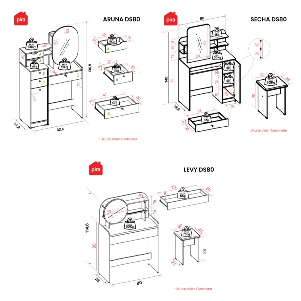 Pira Metropolis OX - Aruna DS80 Meja Rias dengan Kaca Geser