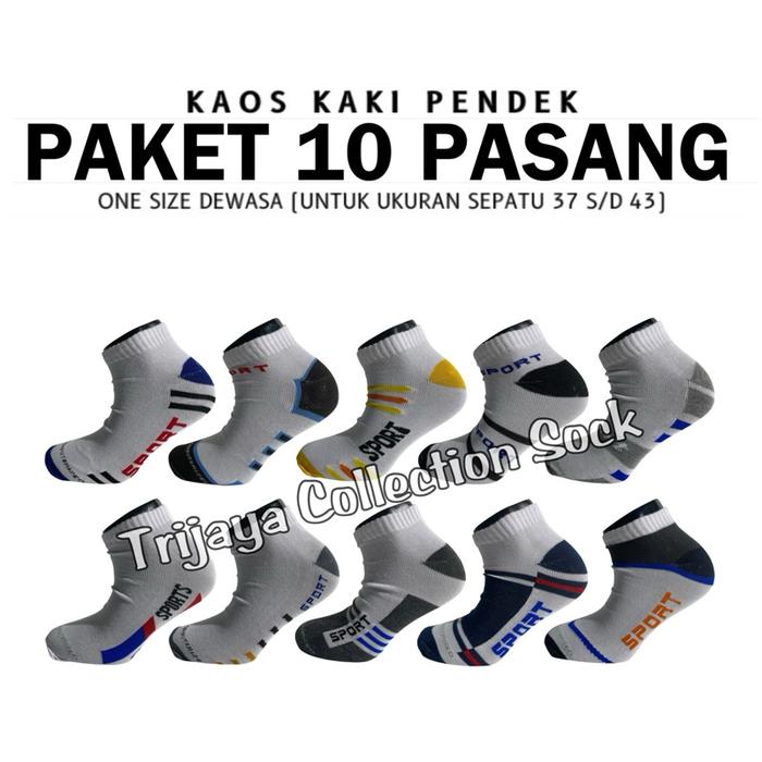 Paket 10 Pasang Kaos Kaki Pendek Sport Pria Wanita Dewasa / Kaos Kaki Semata Kaki Olahraga Unisex - Mix Warna 10 Pasang