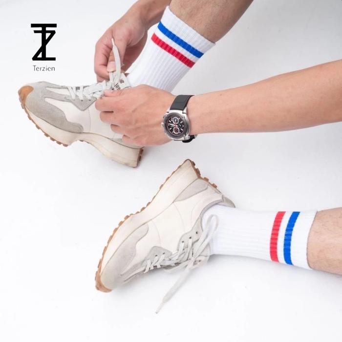 Terzien - Kaos Kaki Panjang Motif Strips Pria Wanita Warna Putih - A01