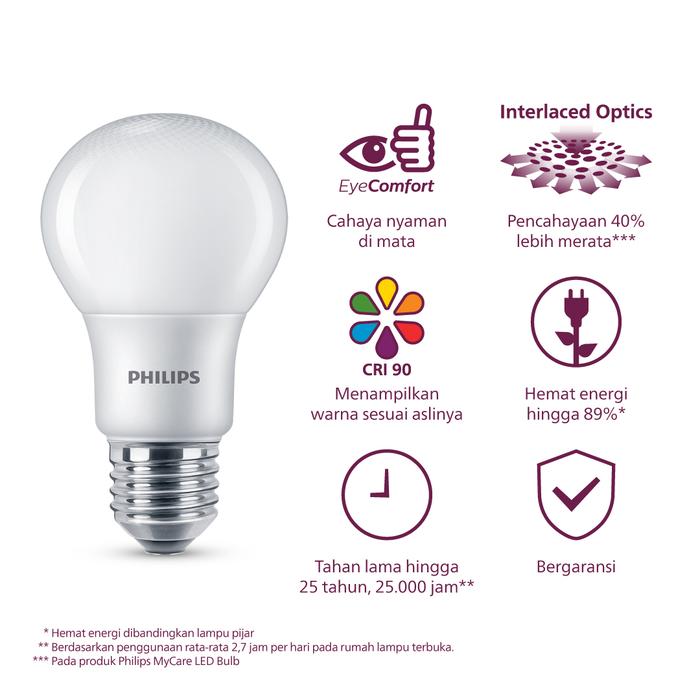 Lampu Philips LED Bulb MyCare Bohlam LED 4W E27 6500K Putih