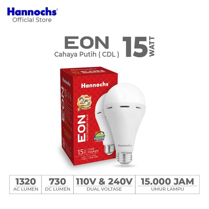 Hannochs Lampu Emergency LED AC/DC EON 15 Watt (2pcs) - Cahaya Putih - Putih