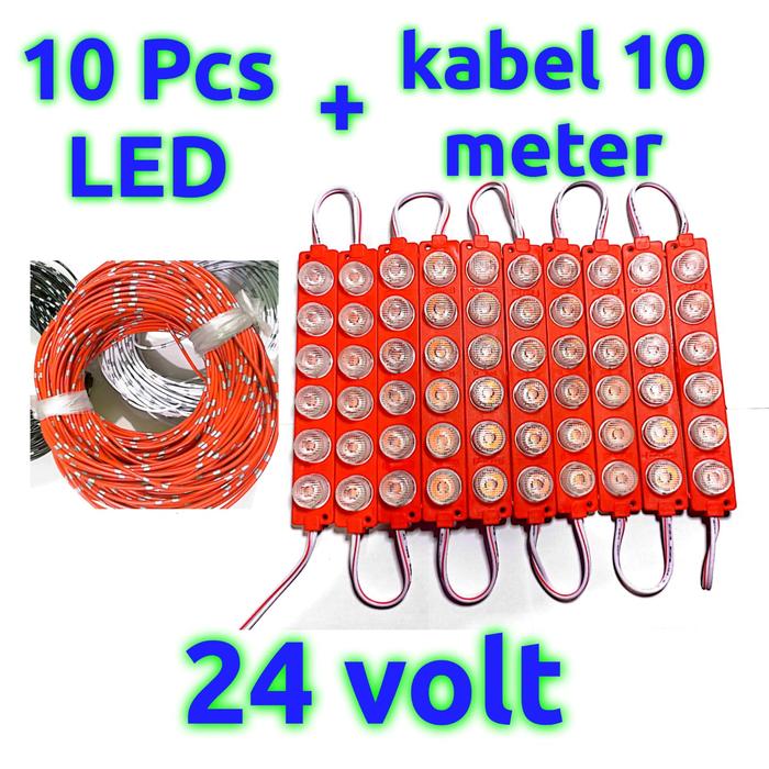 10 pcs LED 6 mata 24 volt dan kabel 10 meter paket lampu kolong truk dan kabel - merah