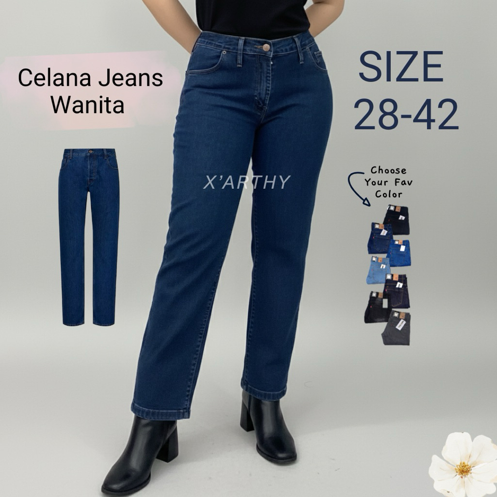 Celana Jeans Wanita Standar 28-42 Celana standar wanita Big Size Jeans Melar