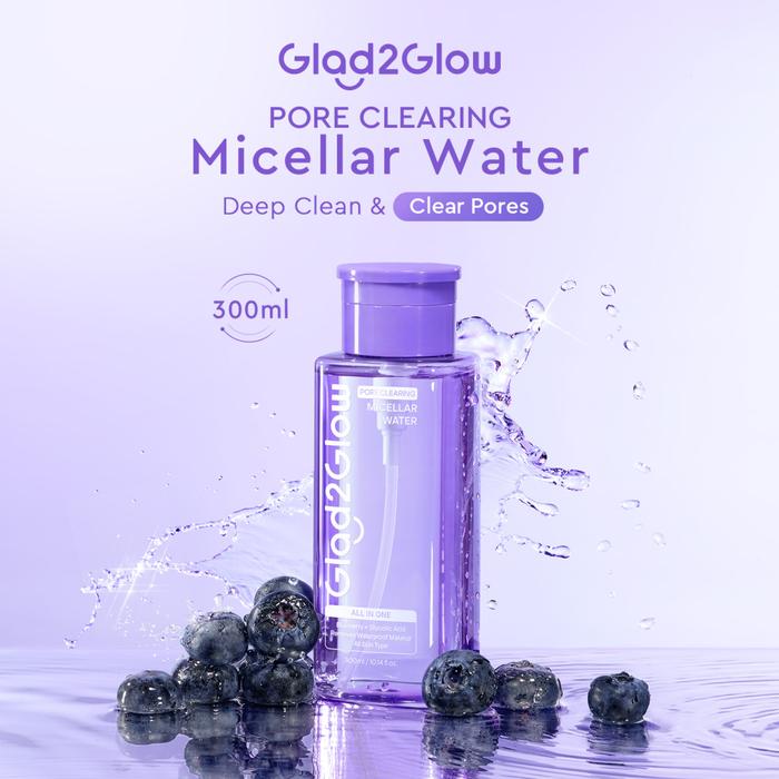 【READY STOCK】GLAD2GLOW MICELLAR WATER GATHER 1/2/3PCS 300ML MUGWORT SALICYLIC ACID ACNE CLEAR YUJA VITAMIN C GLOW BOOSTI