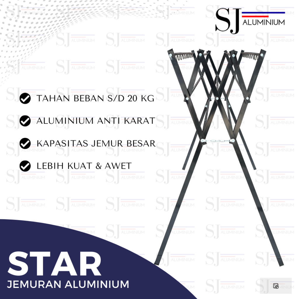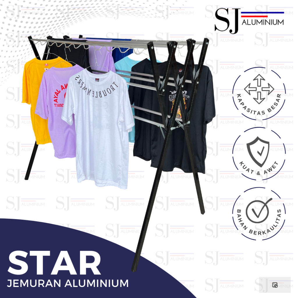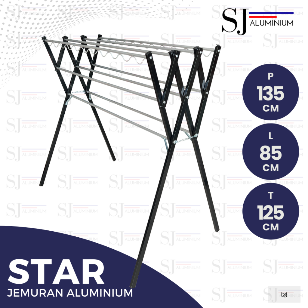 Jemuran Aluminium STAR - Jemuran Baju / Pakaian / Rak Handuk - Jemuran Lipat - Kuat Tahan 20 KG - Ukuran 135 CM Warna