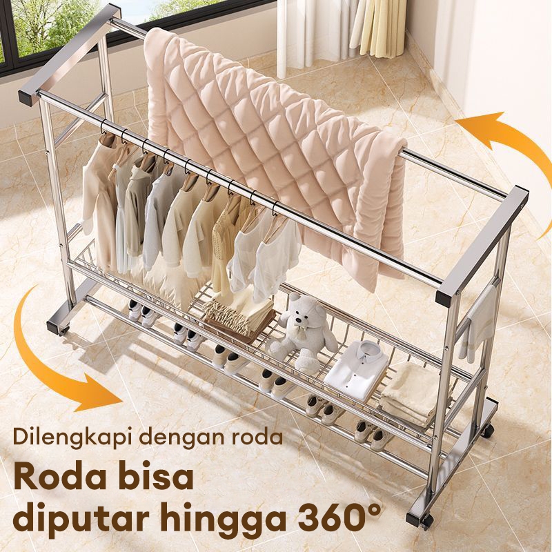 Jemuran Baju Besar Kokoh Stainless Steel Jemuran Baju Tabung Baja Gantungan Baju Berdiri Stainless