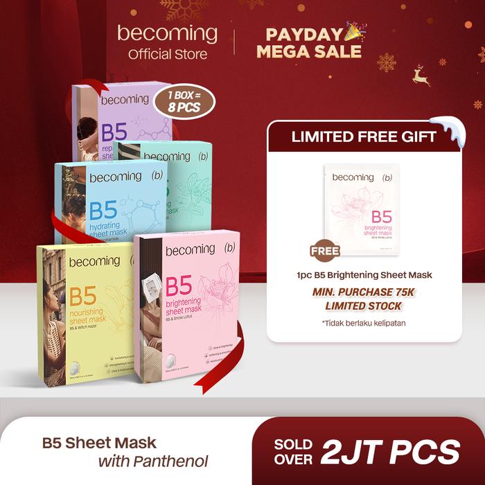 【BUY 7 GET 8】BECOMING B5 SHEET MASK 25ML WITH PANTHENOL | BUNDLE ISI 8PCS 1 BOX | MASKER WAJAH | CAIRAN ESSENCE FACE MAS