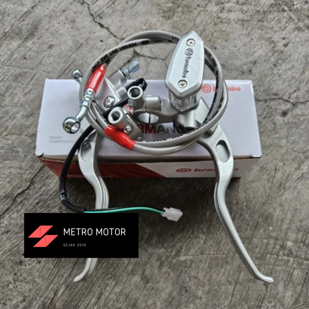 PAKETAN FULL SILVET MASTER REM TABUNG KOTAK BIG LOGO+SELANG REM SERAT SILVER 90-95CM SEMUA MOTOR