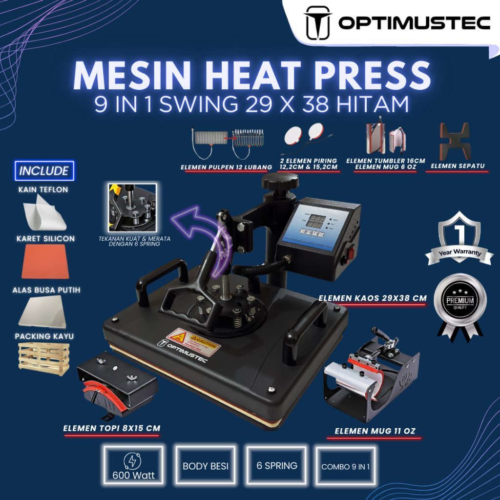 mesin press sablon optimustec kaos swing 29x38 3in1 5in1 9in1 all varian