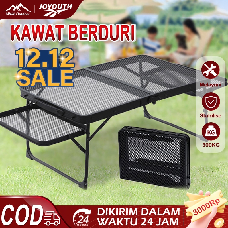 JOY Meja lipat Grid Meja Lipat Piknik Meja Outdoor Aluminium Portable Praktis Serbaguna ketinggian yang dapat disesuaik
