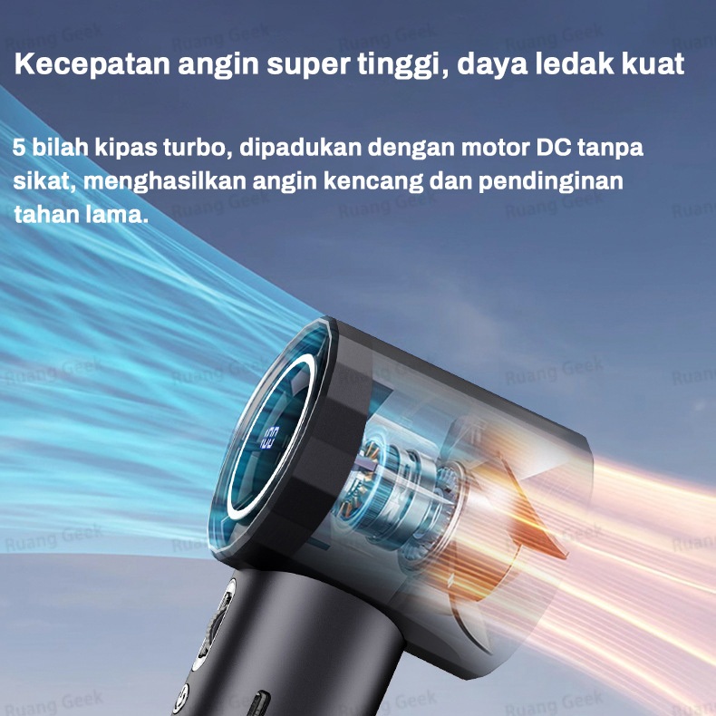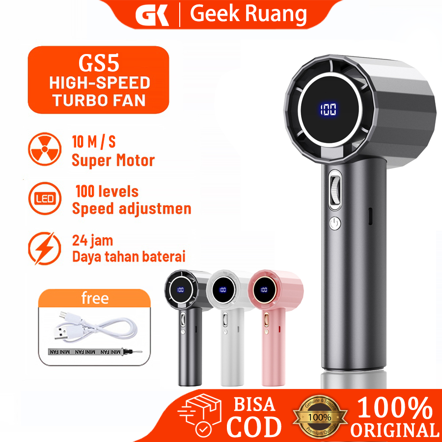 Kipas mini genggam kipas turbo berkecepatan tinggi 100 pengaturan kecepatan layar digital LED kipas genggam isi ulang US