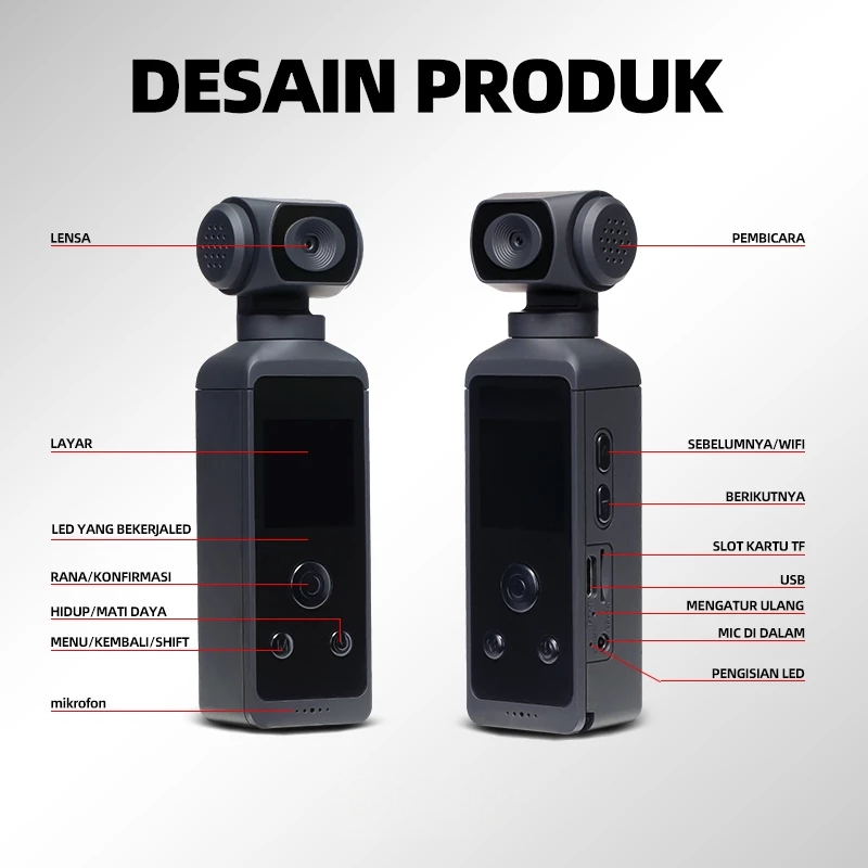 WiFi 4K Pocket Kamera Digital Pocket HD Camcorder kamera action Rotasi 270° dengan Housing Tahan Air Action Camera Rekam