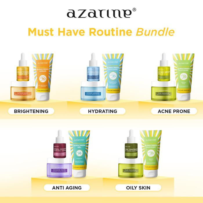 3 PCS AZARINE MUST HAVE ROUTINE BUNDLE SUNSCREEN + MOISTURIZER + SERUM - ACNE GENTLE CLEANSING FOAM 75ML