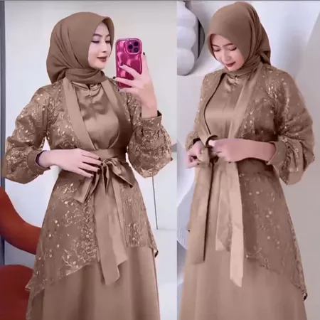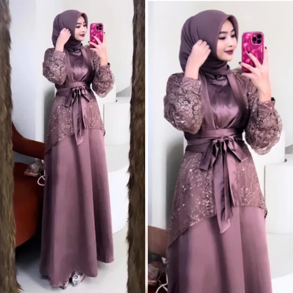 VELOXA DRESS - SATIN BURGUNDY PREMIUM JUMBO MEWAH SATIN BUSUI FRIENDLY INNER ER BROKAT KONDANGAN GAMIS LEBARAN KEKINIAN 2026
