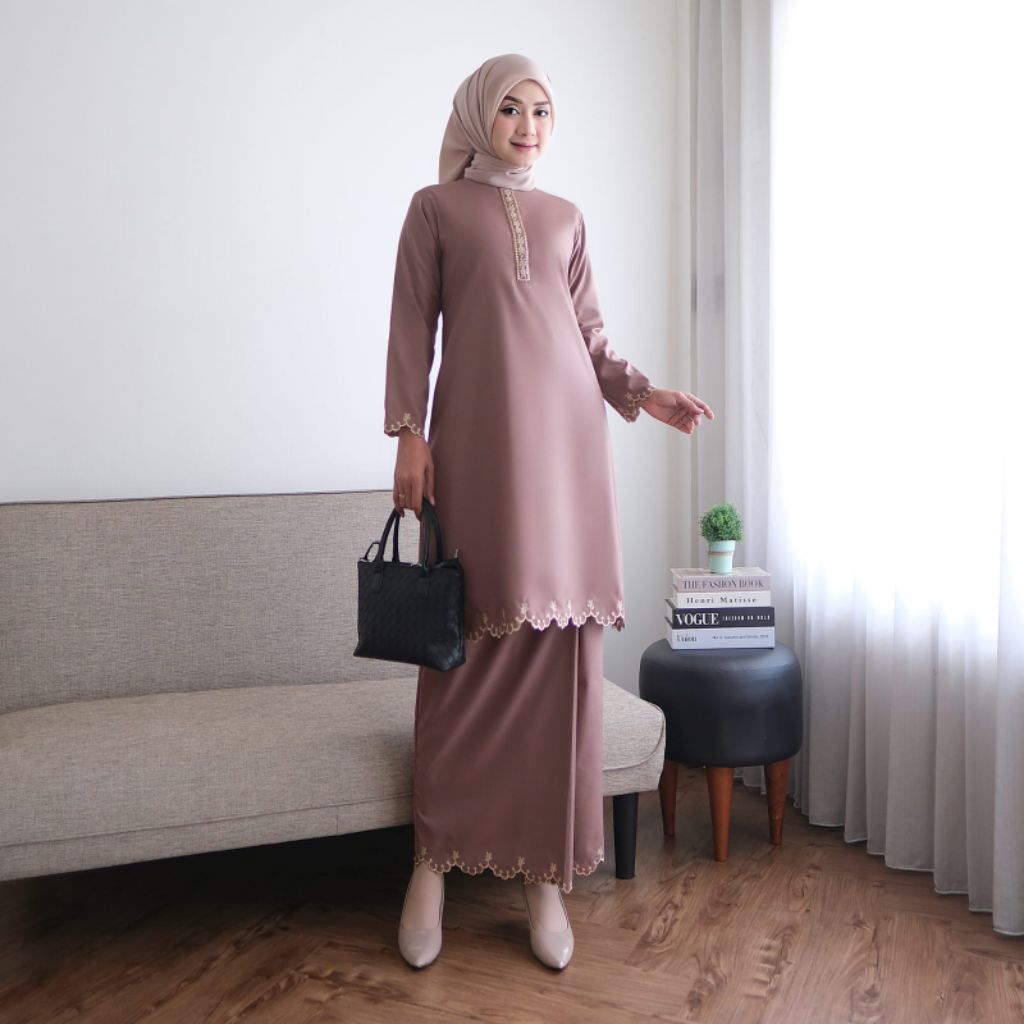 Hayani-One Set Elvina 2 Kurung Melayu Katun Toyobo Bordir Bunga