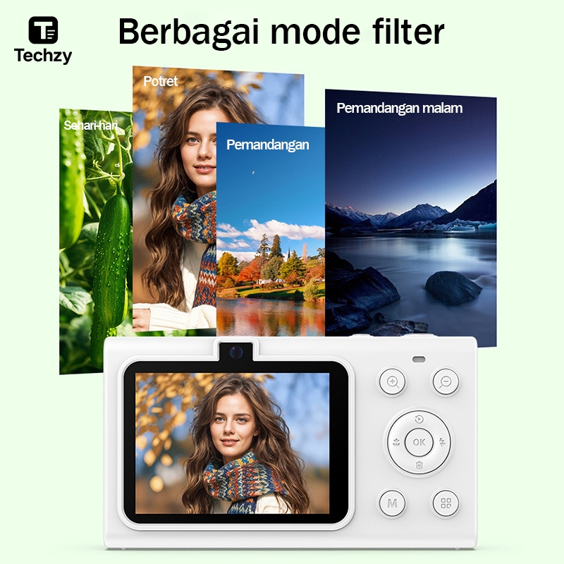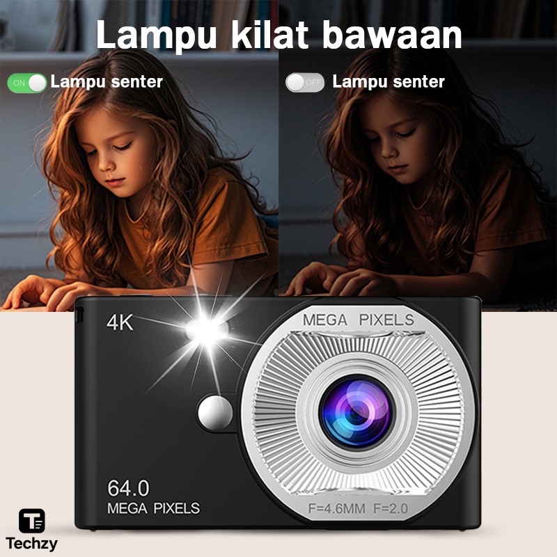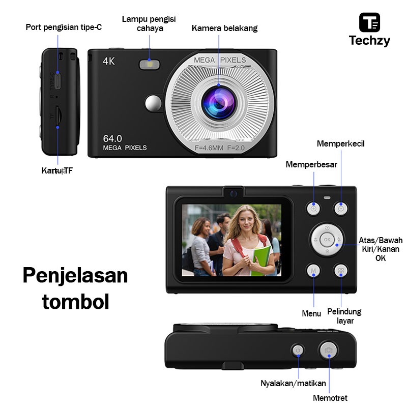 Techzy M-20 Kamera Digital CCD Camera 64MP 16X Zoom 1080P 2,4 Inci 4K Vlog Anti yang Filter Kamera Pocket,Dukungan Self
