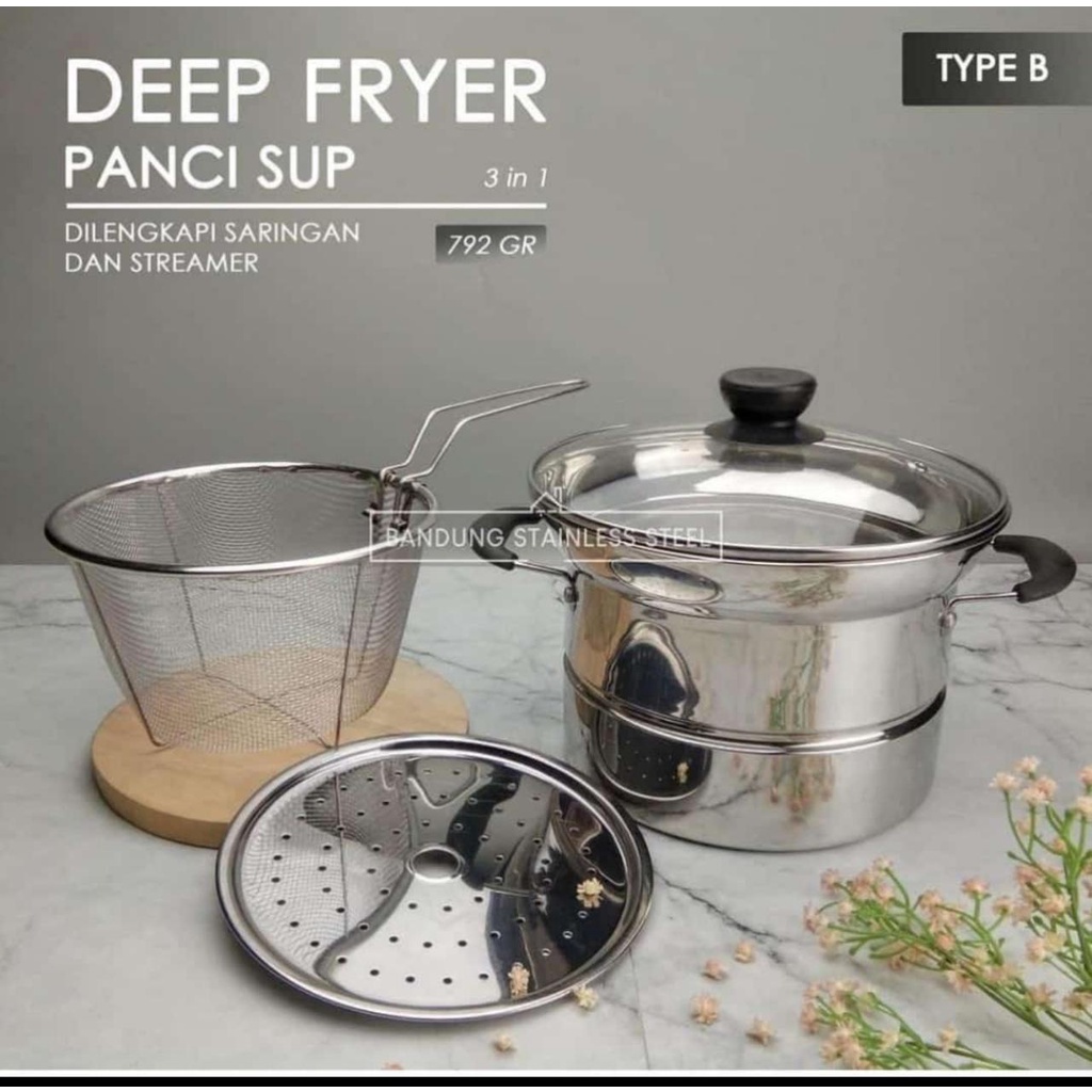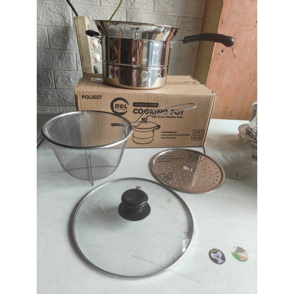 Panci Serbaguna Panci 3 in 1 Kukus Rebus & Goreng Panci Kentang & Aneka Masakan Crispy 22cm
