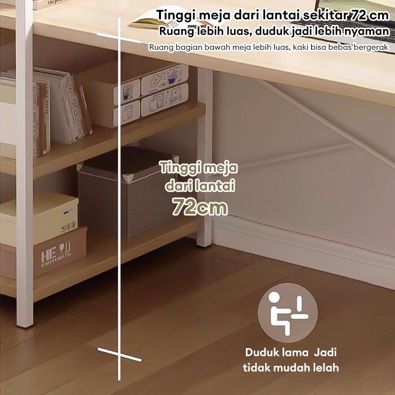 BMZAR Meja Belajar Serbaguna Meja Kantor Minimalis Meja Kerja Dengan Rak Buku Meja komputer Meja Tulis Kokoh