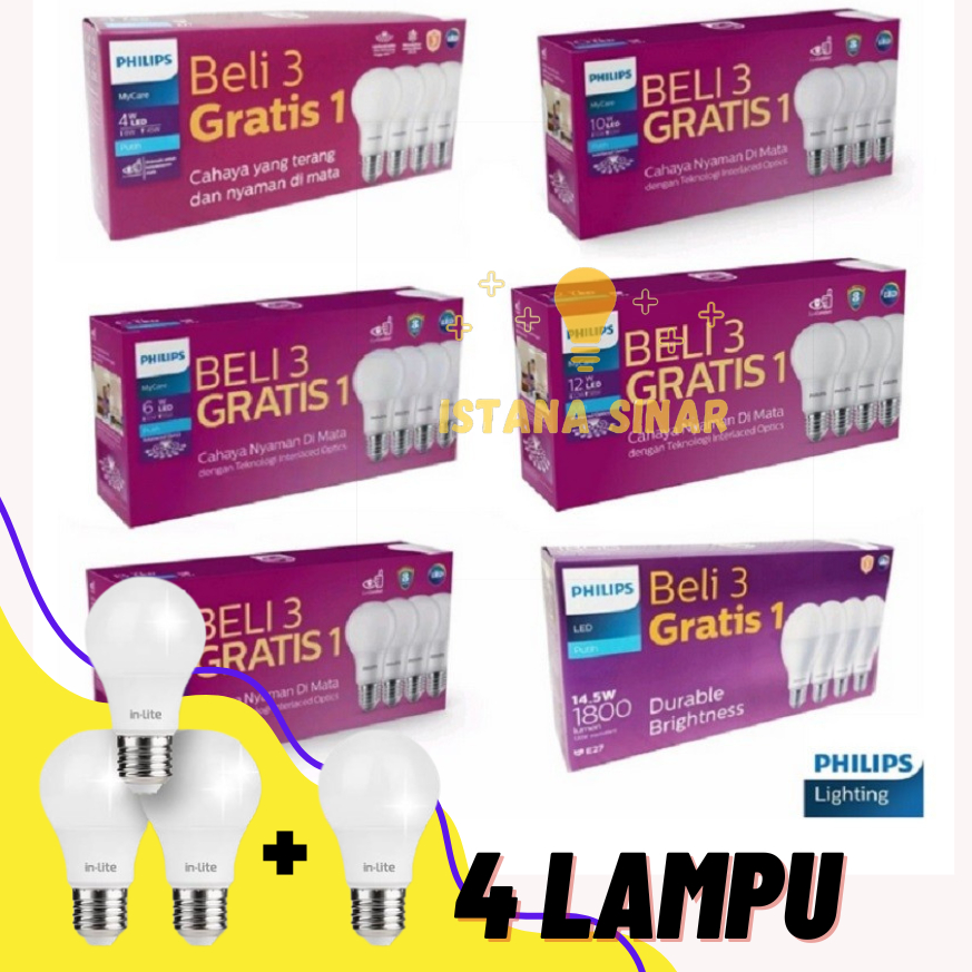 Philips Lampu LED Paket 6 8 10 12 14,5 19 Watt 3Gratis1 Putih Philips Bohlam Led Philips MultiPack