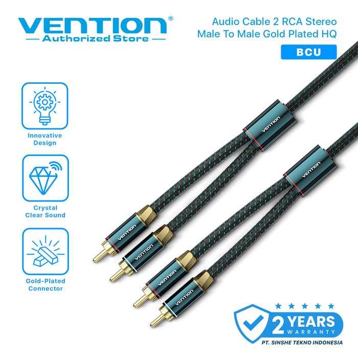 Vention Kabel Audio 2 RCA Stereo Male to Male Gold Plated High Quality sound system - BCU 0.5 Meter