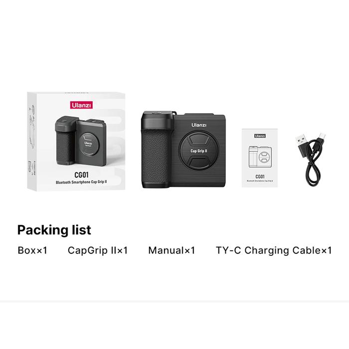 ULANZI CG01 CAPGRIP (VER.2) BLUETOOTH SMARTPHONE HP UNIVERSAL HANDLE GRIP ANTI SHAKE WITH MIRROR AND SHUTTER FOR FOTO / VIDEO - BLACK