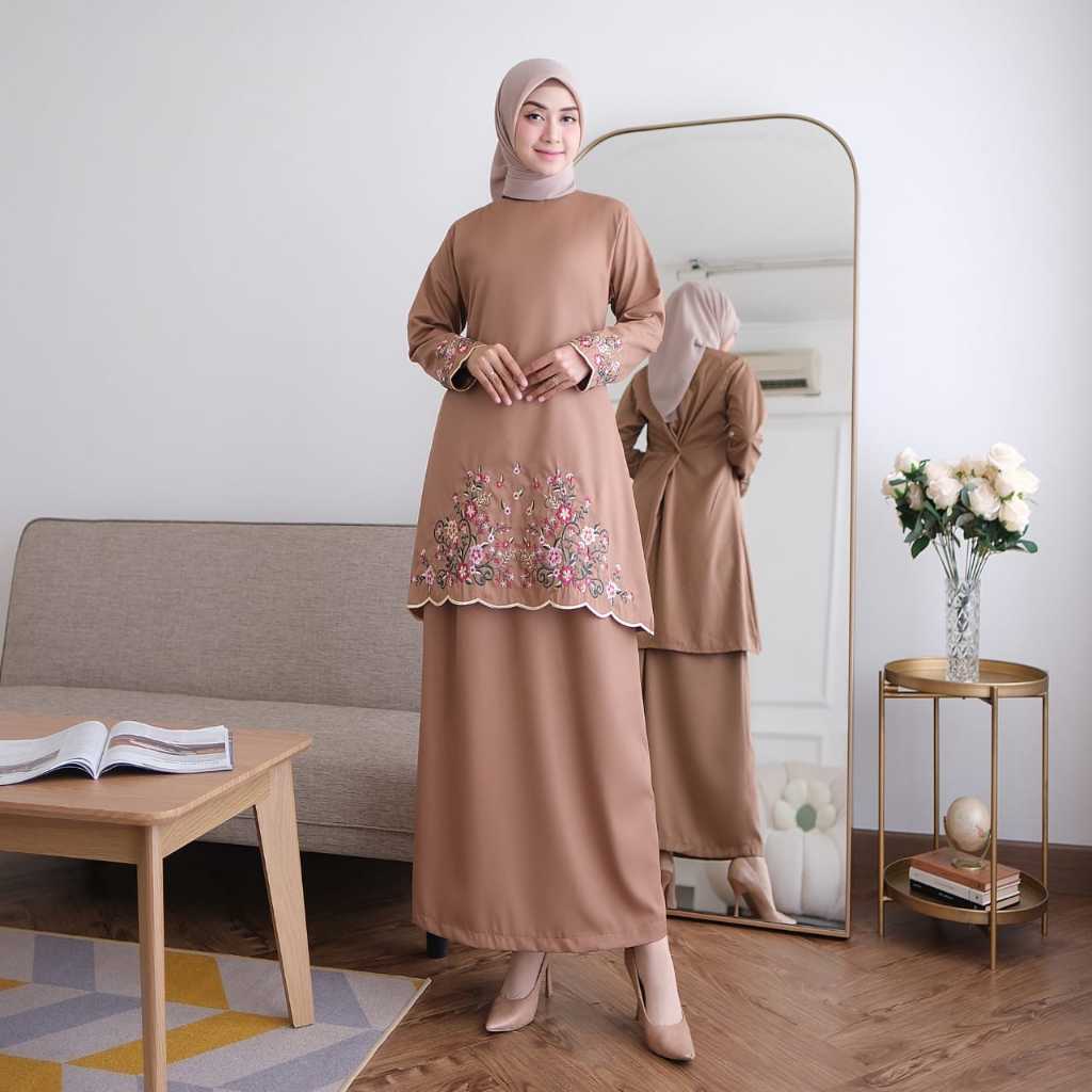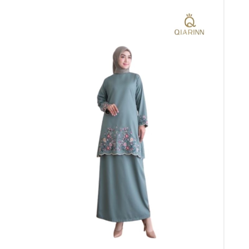 Qiarinn - Stelan rok Kurung Melayu Bordir Kiranan Bahan Katun Toyobo