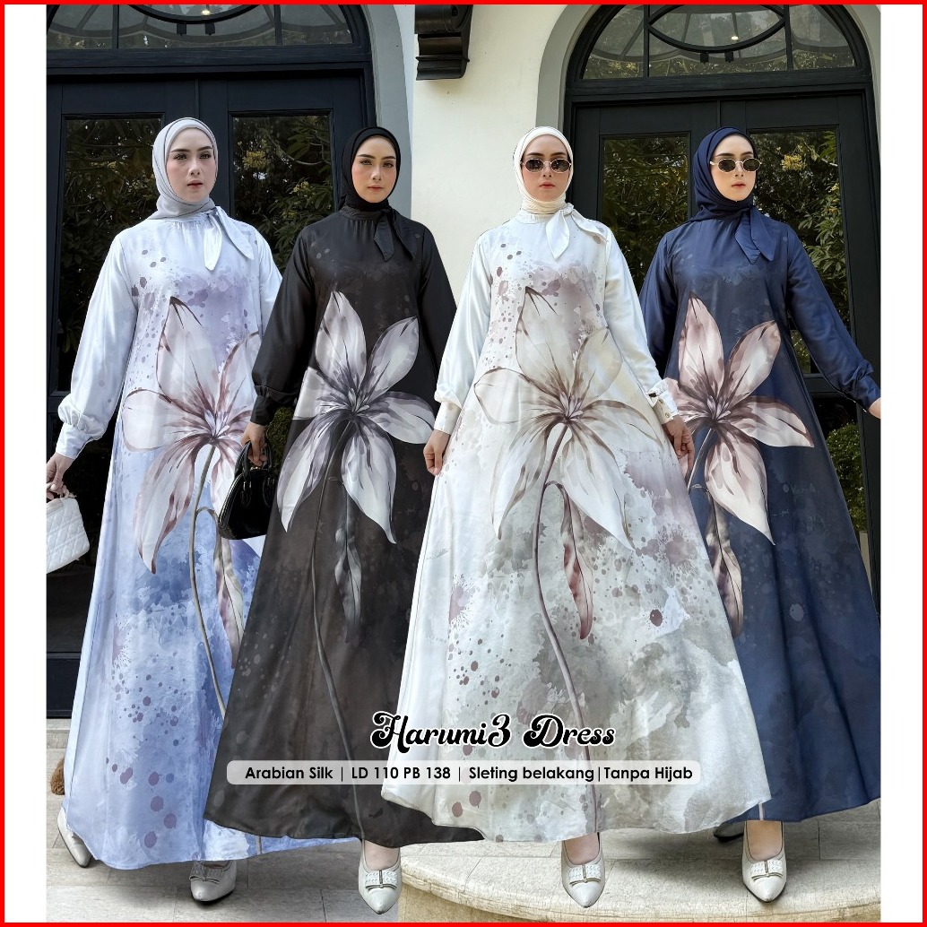 Ilya Fs - Harumi 3 Baju Gamis Dress Model Terbaru 2025 Bahan Arabian Silk Mewah Kekinian