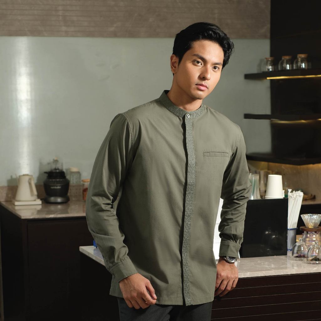 Kemeja Koko Pria Cotton Formal Basic Polos Lengan Panjang