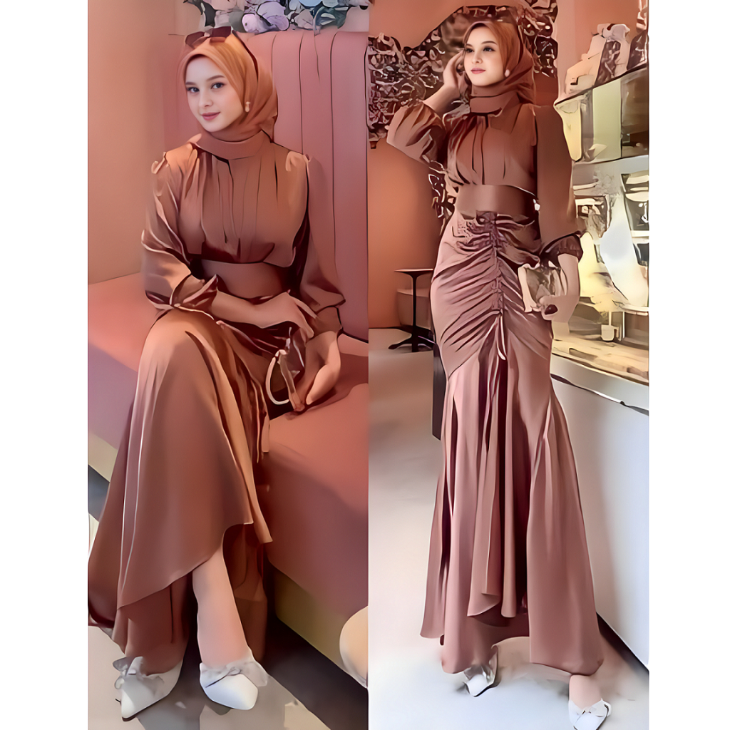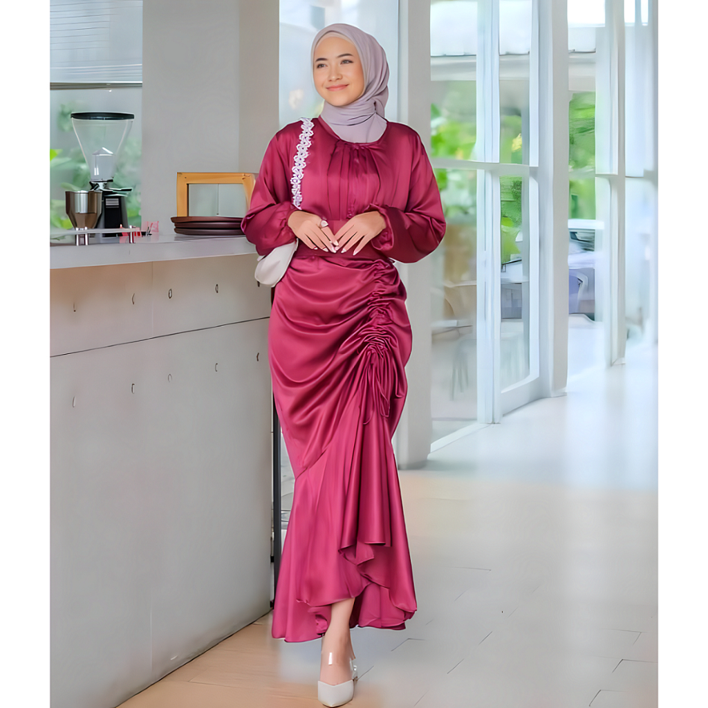 Herita Collection - Dress Serut Kondangan Vanya Satin Silk Size M L XL / Baju Gamis Wanita Terbaru 2026 / Gamis Pesta Mewah Elegan / Dress Bridesmaid / Gamis Lebaran Wanita