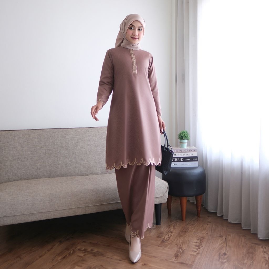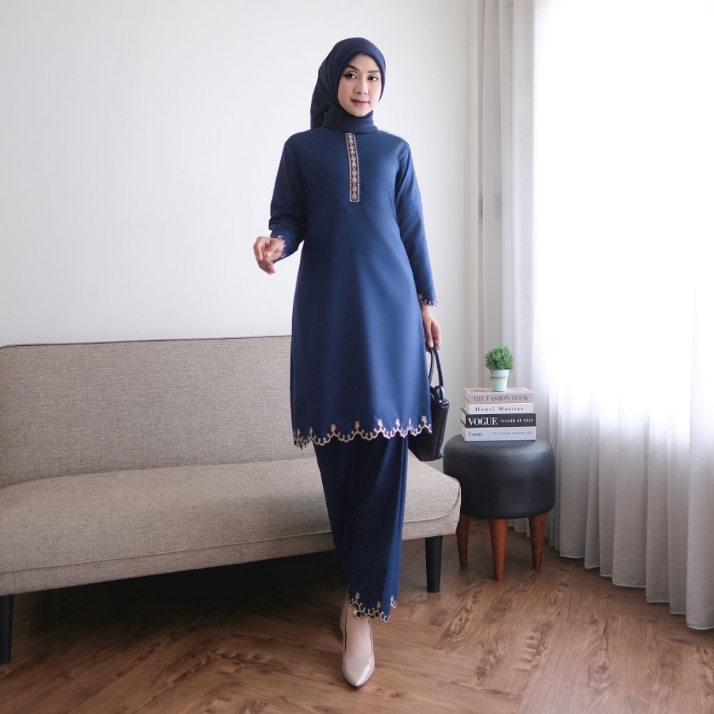 Hanifa Fashion - One Set Melayu Baju Kurung Stelan Rok Bordiran Set Rok Bahan Toyobo Busui