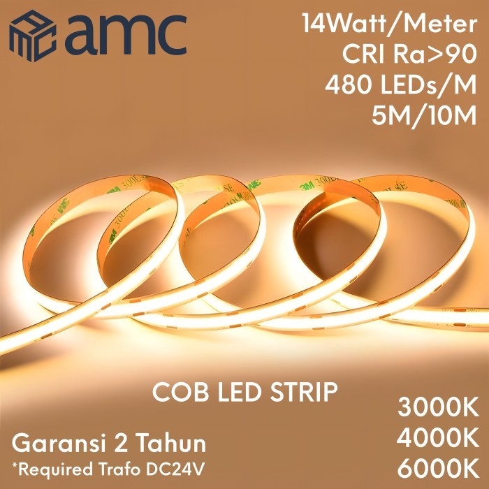 AMC 480D COB LED Flexible Strip DC 24V CRI Ra 90+ Dotless 480 LEDsM 14WM 5Meter 10Meter LED Strips