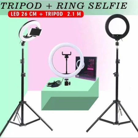 PAKET LENGKAP RINGLIGHT 26 CM/ 33 + TRIPOD 2.1 METER FREE PHONE HOLDER