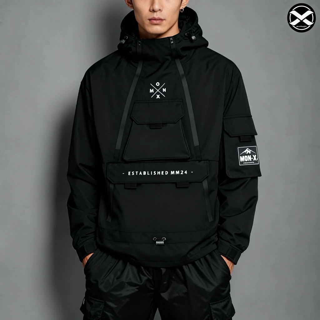 Jaket Pria Gorpcore BGSR Windbreakers Waterproof Series Hitam