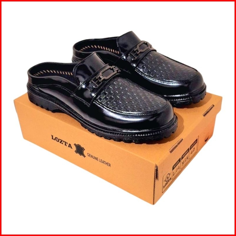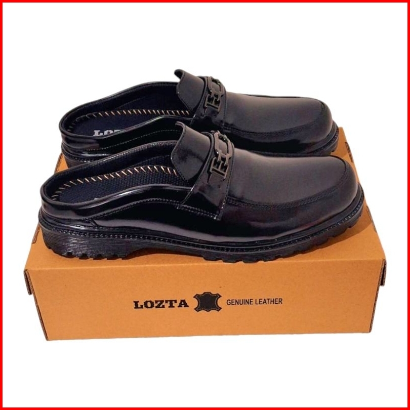 Lozta Sepatu Sandal Slop Bustong Pria Kulit Mengkilap Tutong Selop Vantablack 01 Series