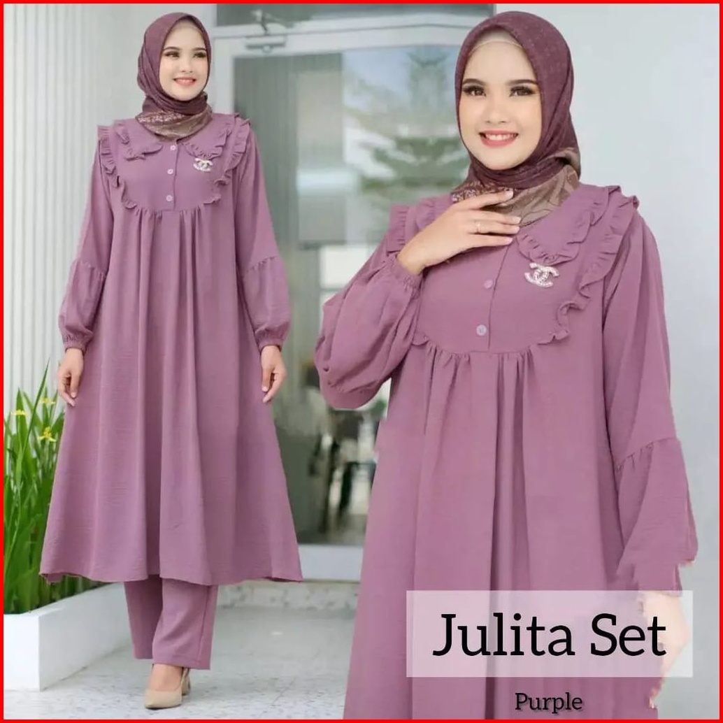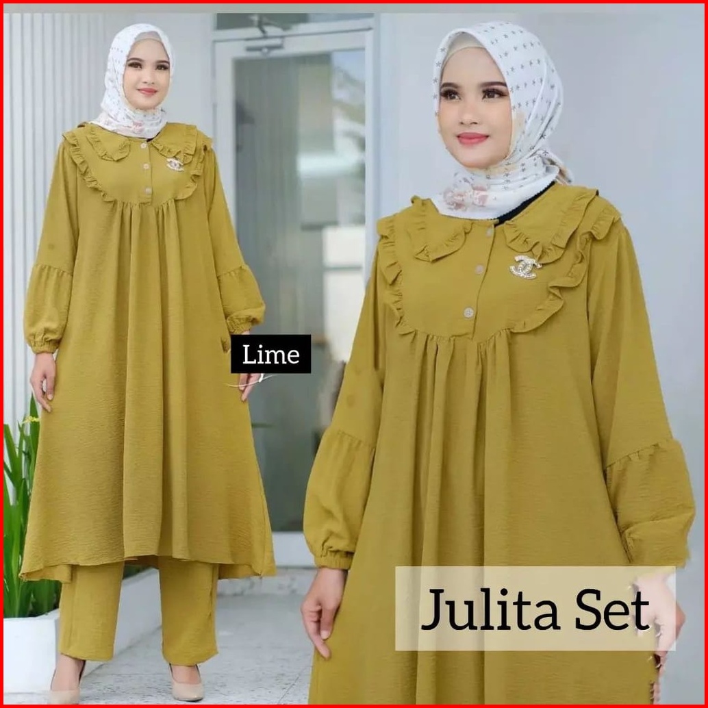 Dizzah Gamisku Terlaris Pakaian Wanita Setelan Cringkle Airflow Julita Set Model Elegan Terbaru