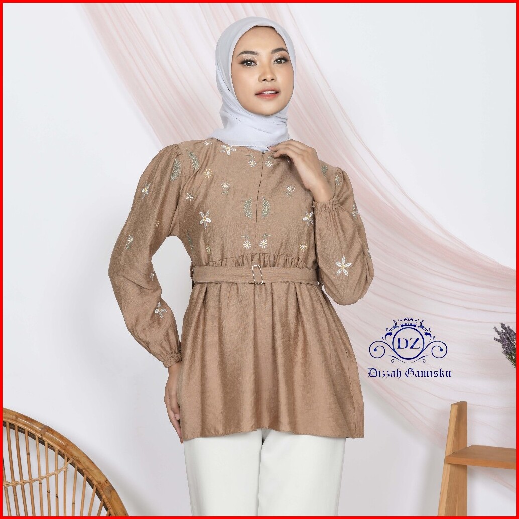 Atasan Kemeja Reyna Blouse Atasan Crop Top Motif Border Terbaru By Dizzah Gamisku