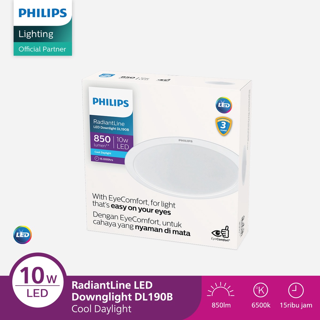 Paket 3X Lampu Philips Radiantline Downlight Eridani 10W Putih Bonus Lampu