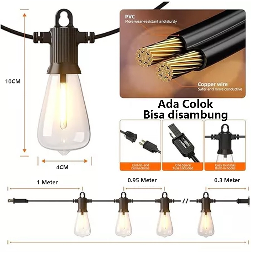 Kuning Lampu 30Meter Kabel 30 Lampu 1Set Dapat Diredupkan Lampu Gantung Outdoor Tahan Air Lampu Cafe